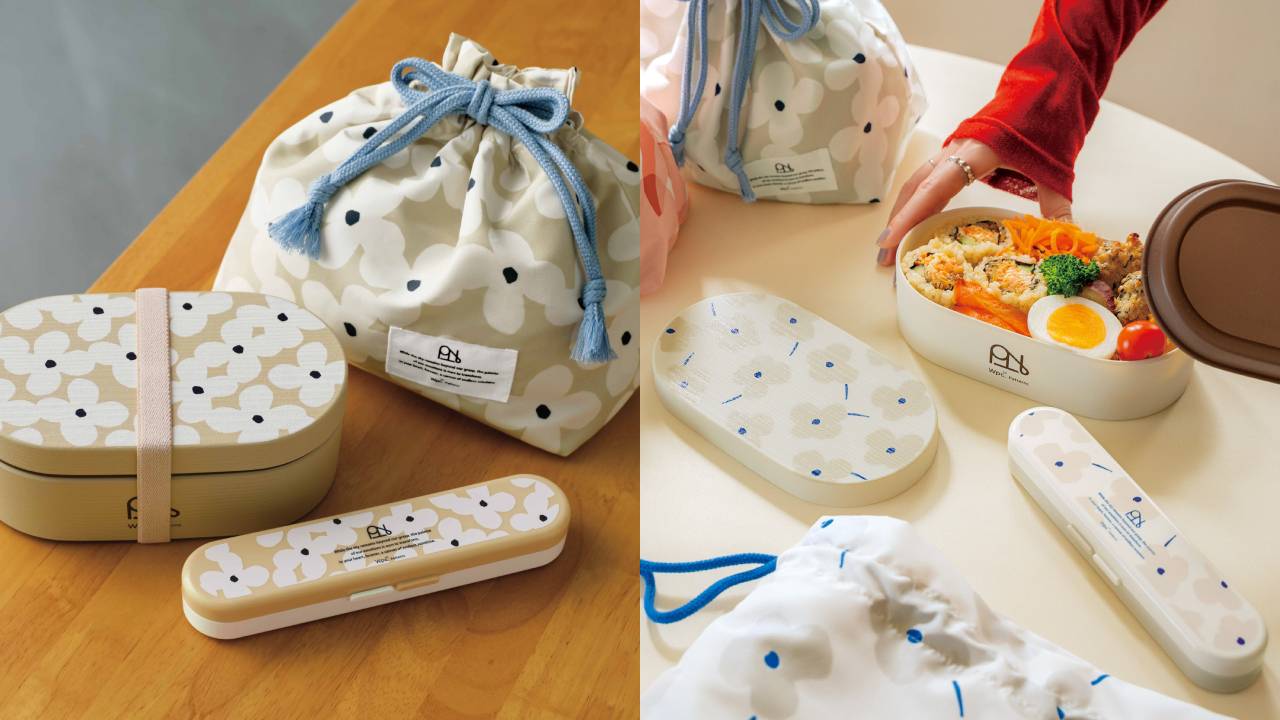 周りの目を引くデザインが印象的な「ランチボックス」は、1段なのに具材がたっぷり詰められるから、毎日使いにも◎。シール蓋で部品が少なく、お手入れしやすいのも嬉しいポイント。簡易保冷生地を使用した「ランチ巾着」やお箸、スプーン、フォークをコンパクトに収納できる「カトラリーセット」と柄を揃えて使うことで統一感が生まれ、思わずSNSに載せたくなる可愛らしさに。