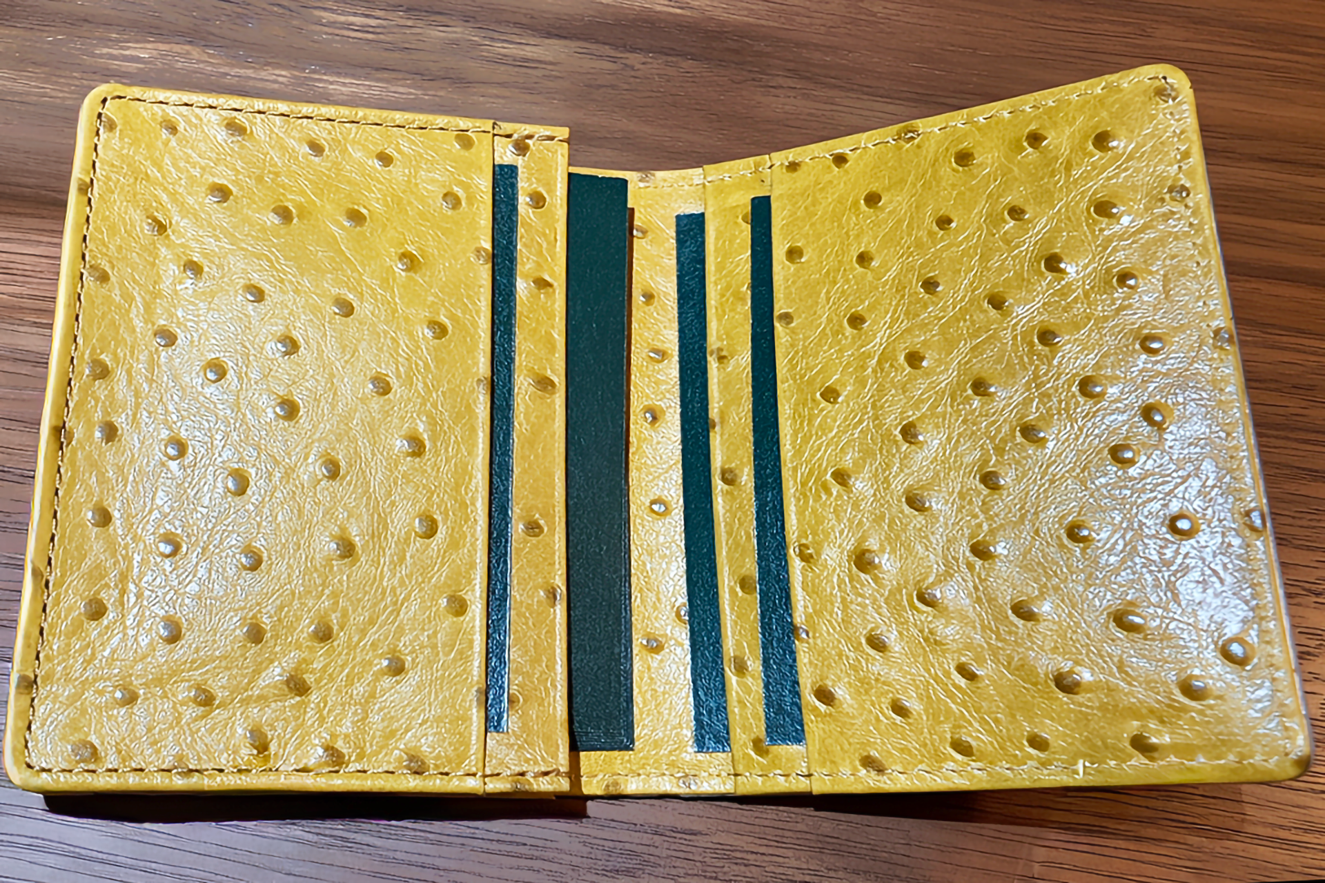 また、よりお客様らしさを表現いただけるようカラーと内装の異なる4種類をご用意いたしました。外側の牛革と同じカラーを使用したベーシックなダークグリーンの名刺入れは堅実さといった信頼感を感じる印象です。また、外装の牛革とはカラーを変え、クロコダイルやドットの型押しを施した遊び心のあるおしゃれな名刺入れもご用意しております。開いたときに見えるクロコダイルやドットの型押しは先方の目を引き、会話のきっかけにもなるかもしれません。