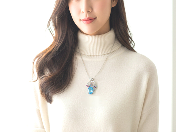 【11月 誕生石 ブルートパーズ】ブローチでも使えるペンダント・ネックレス~ハイジュエリー~
