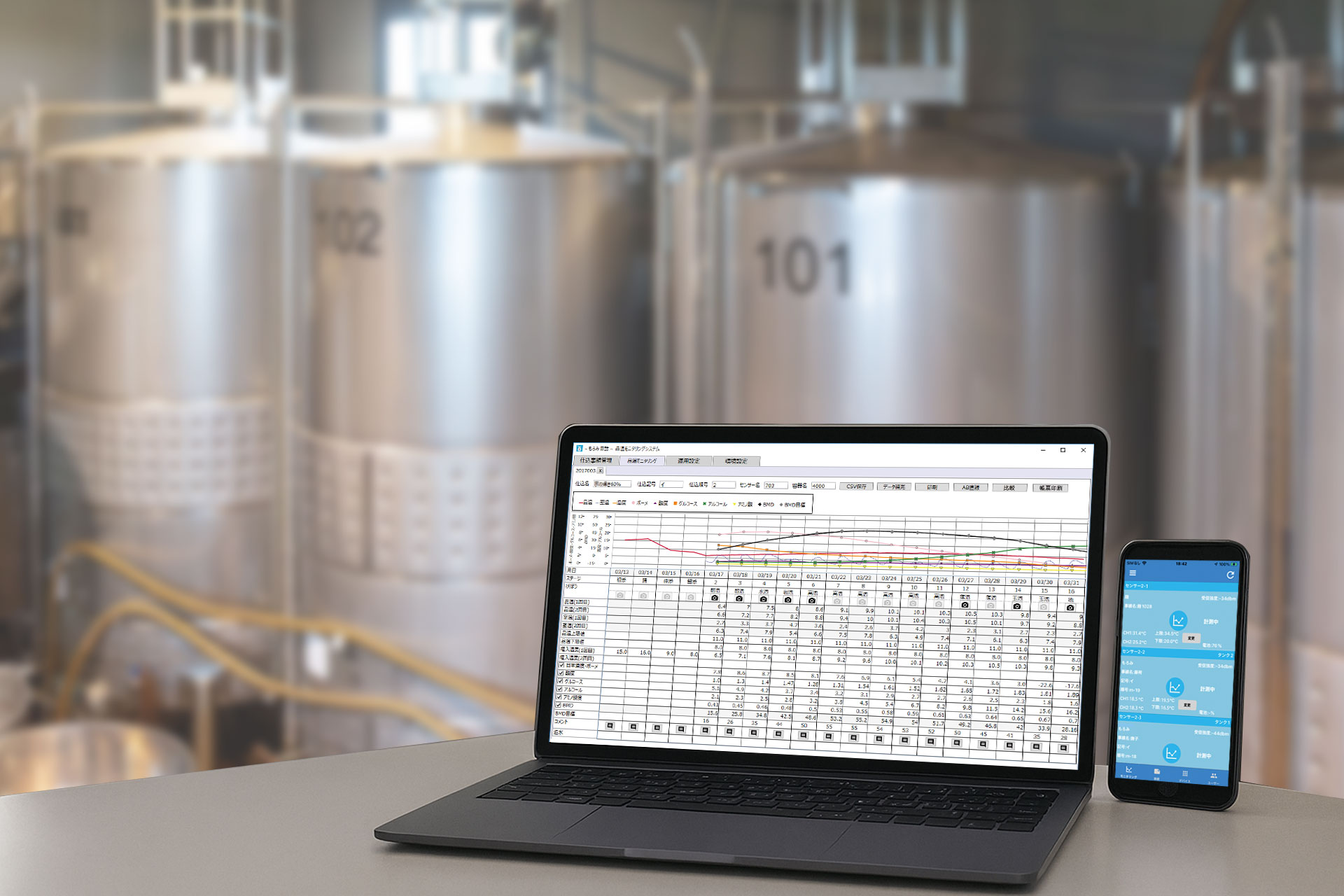 酒造現場では、発酵管理や品温制御、帳票作成など多くの作業が日々行われています。これらは品質維持に欠かせない一方で、現場の負担が大きく、効率化や省力化が求められてきました。当社では、こうした課題に対応するため「もろみ日誌クラウド」を提供し、スマホやPCを活用した麹・酒母・もろみの3工程における品温管理をはじめ、クラウド化による酒造現場のDXを支援しています。