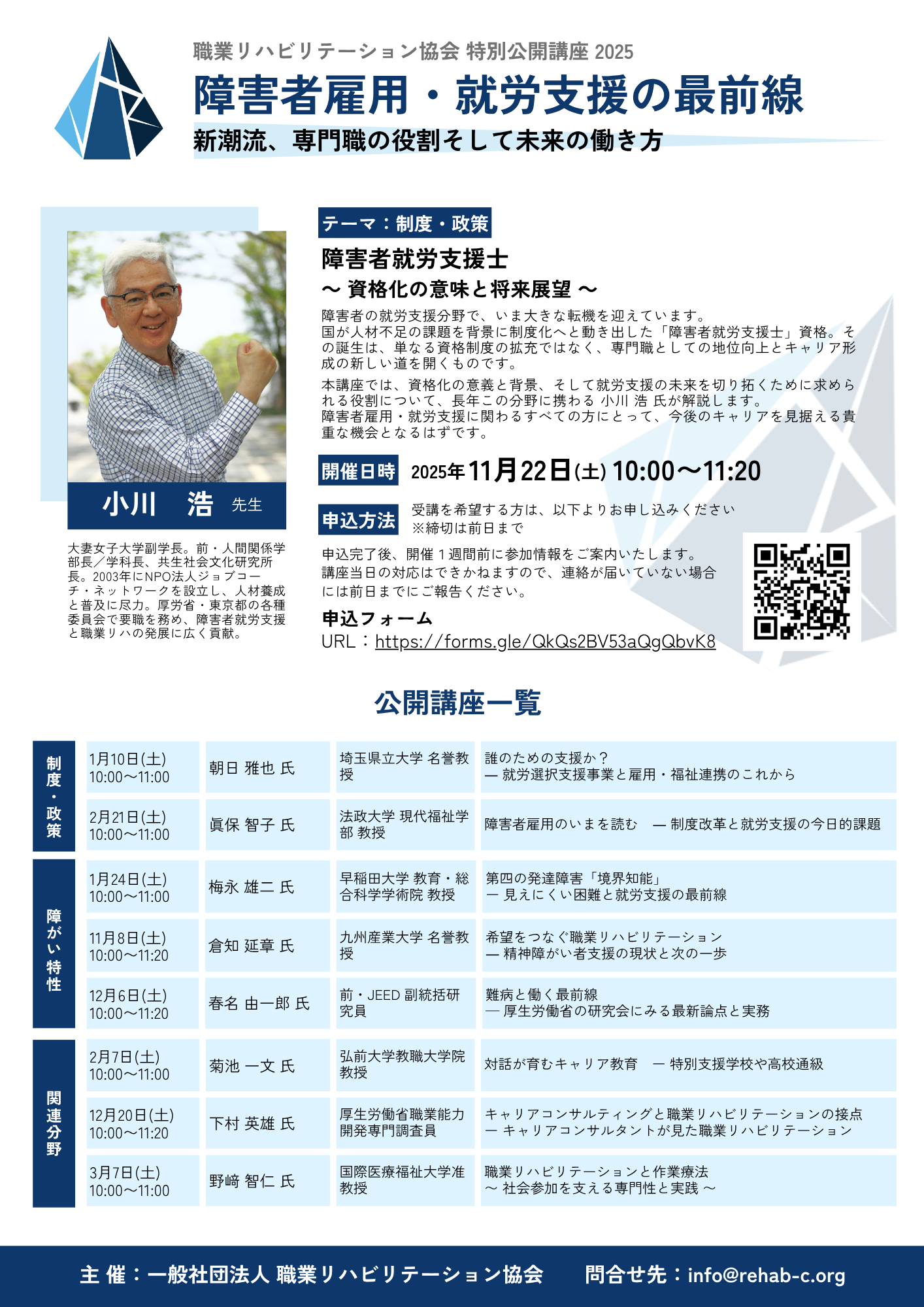 特別公開講座2025 《第2回》 開催:障害者就労支援士 ~ 資格化の意味と将来展望 ~