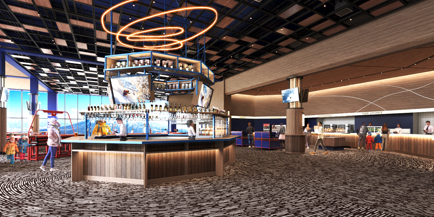 エースゴンドラ山麓に新たにオープンする「ALPEN NODE(アルペンノード)」は、約 240 席を備えたブリュワリーレストラン「POWDERHOOD RESTAURANT & TAPROO(パウダーフッド レストラン&タップルーム)」とショップが併設された施設です。自家製クラフトビール(※1)や国産和牛バーガー、倶知安町産ジャガイモなどの地元食材をふんだんに使った多彩なメニューをラインアップし、23 時まで営業いたします。アプレスキー(※2)からナイトタイムまで、ゲレンデでの滑走後や近隣にご宿泊の方にもお酒や音楽を楽しめる場所として、気軽にお立ち寄りいただけます。
