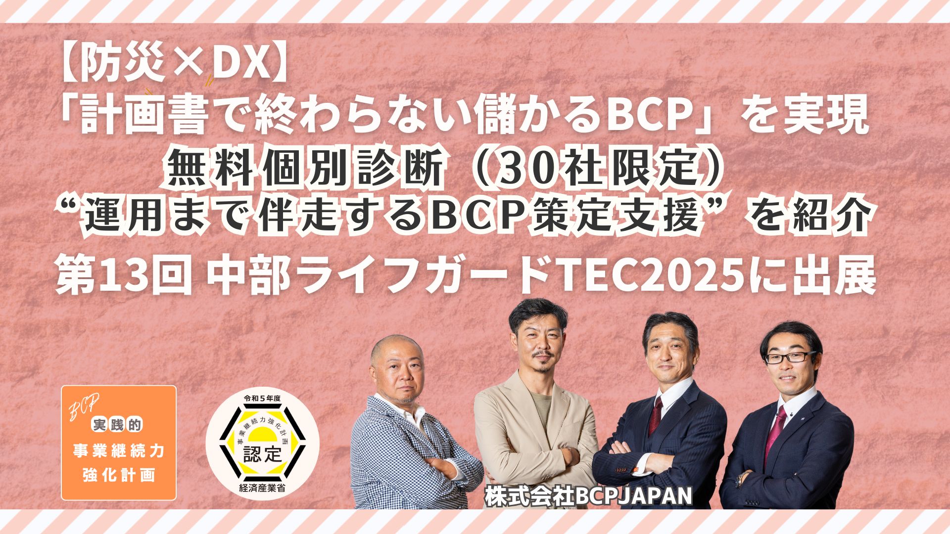 【防災×DX】「計画書で終わらない儲かるBCP」を実現する伴走支援を展示|第13回 中部ライフガードTEC2025に出展