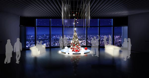 クリスマスの煌めく夜景をゆっくりとお楽しみいただけるよう、12月23日(火)・24日(水)・25日(木)の3日間は、開館時間を 23 時まで延長します。毎年多くの人で賑わう「けやき坂イルミネーション」を上空から一望できるのは、この場所ならではの特別な体験です。無数の光が織りなす幻想的な光景は、クリスマスの夜をより一層ロマンチックに彩ります。