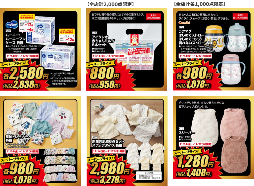 株式会社赤ちゃん本舗(本社:大阪市中央区 https://www.akachan.jp)は、年に一度のお得なセール「レッドフライデー」の第3弾、第4弾を、2025年11月14日(金)から11月27日(木)まで全国のアカチャンホンポで開催いたします。