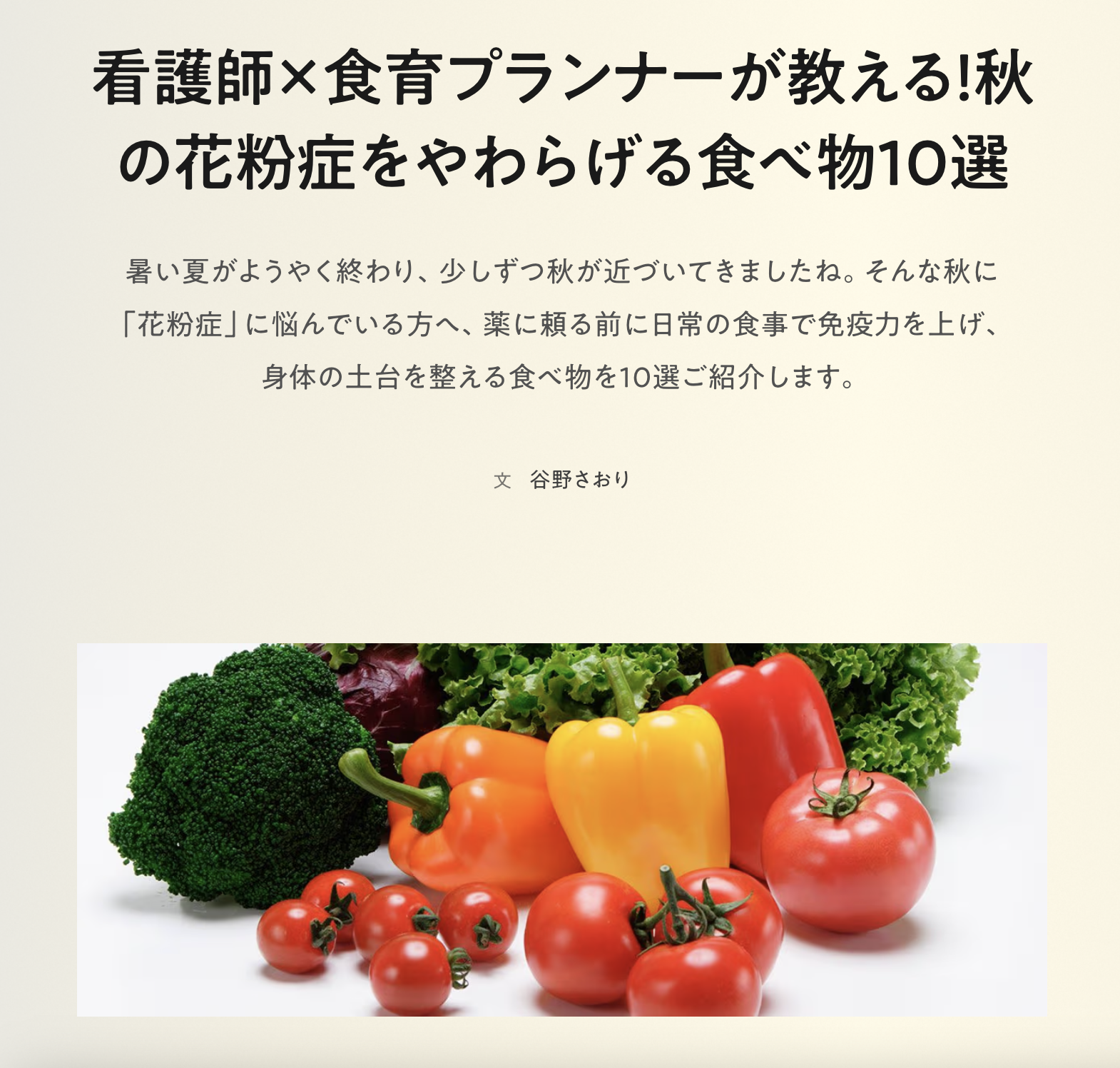 インタビュー記事URL: https://www.nowh.media/articles/autumn-pollen-relief-10-foods-nurse