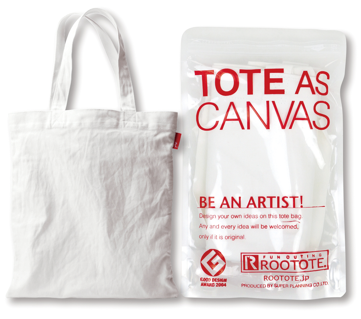 多くの人に、絵を描く楽しさや表現する楽しさ、また、それが鑑賞される楽しさを感じてもらいたい。そしてそのトートバッグを持った人々が行き交う街はギャラリーのようになって楽しいのでは、というコンセプトから2003年10月に生まれたROOTOTE(ルートート)の真っ白なトートバッグです。「トート・アズ・キャンバス」は商品のみならず、コミュニケーションデザインとして評価され、2004年度グッドデザイン賞(商品デザイン部門/身のまわり商品)を受賞しています。