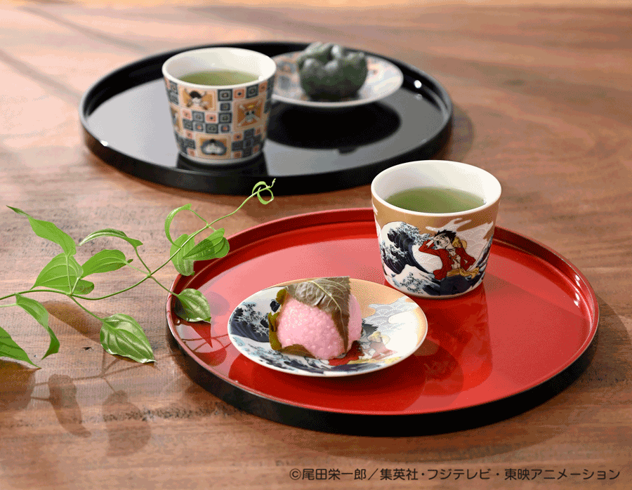 【使えるアート】海外でも人気の九谷焼で表すONE PIECE 時代画風で伝統と勇猛さを表現した小皿とそば猪口を新発売