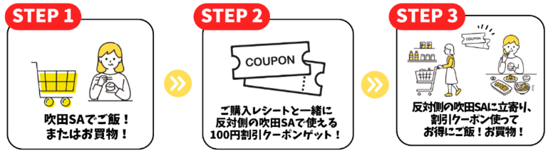 吹田SA(上下線)で 「レシートクーポンでお得にお買い物キャンペーン」を開催します