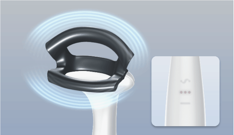 やわらかいシリコンホルダーで目元にしっかりフィットし、心地よい振動で筋肉を刺激。