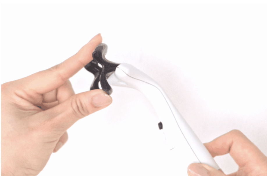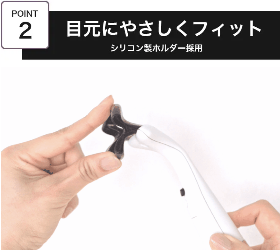 やわらかいシリコンホルダーが目元に優しくフィットし、簡単操作でケアを実現。