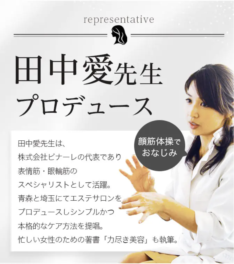 開発した田中愛先生は3児の母として多忙な日々を送る中、忙しい女性たちに寄り添った美容方法を提案し、自身の美しさでもその信頼を証明し続けています。