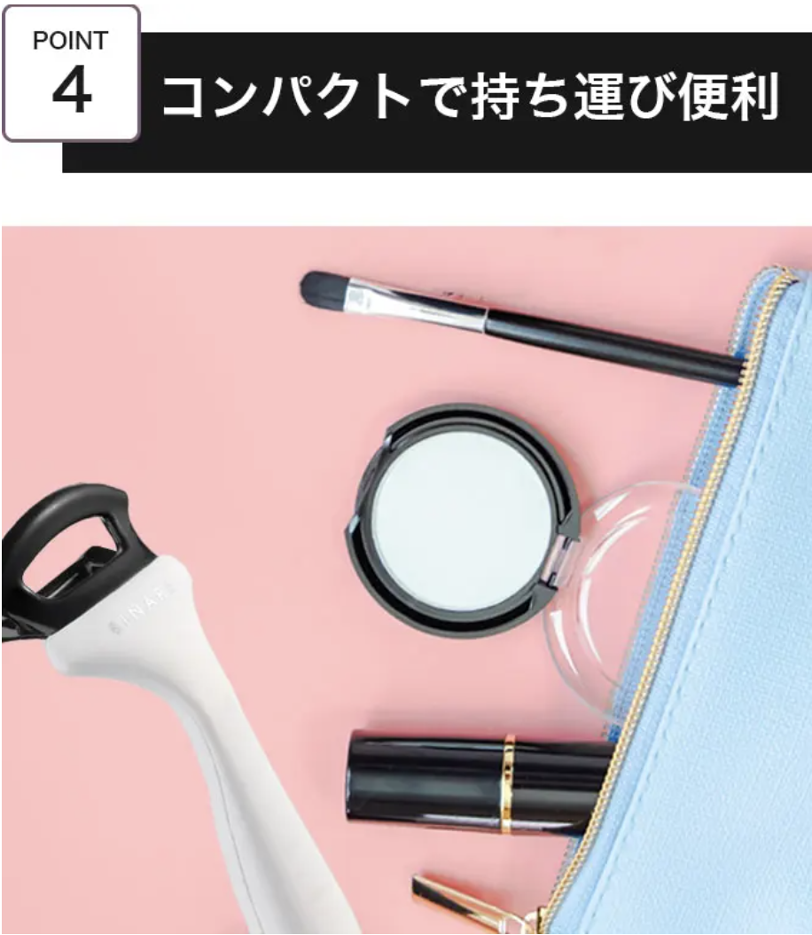 コンパクト設計で、軽量で持ち運びがしやすく、旅行や出張先でも気軽に目元ケアができます。