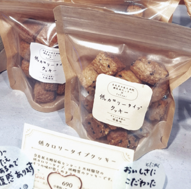低カロリーで、脂質や糖質にも気を遣っているけれど、美味しく食べられるお菓子を作りたいとの思いから、奈良県立医科大学付属病院糖尿病センターとの共同開発を行い、美味しさを追求した糖質制限の方向けクッキーが完成しました。