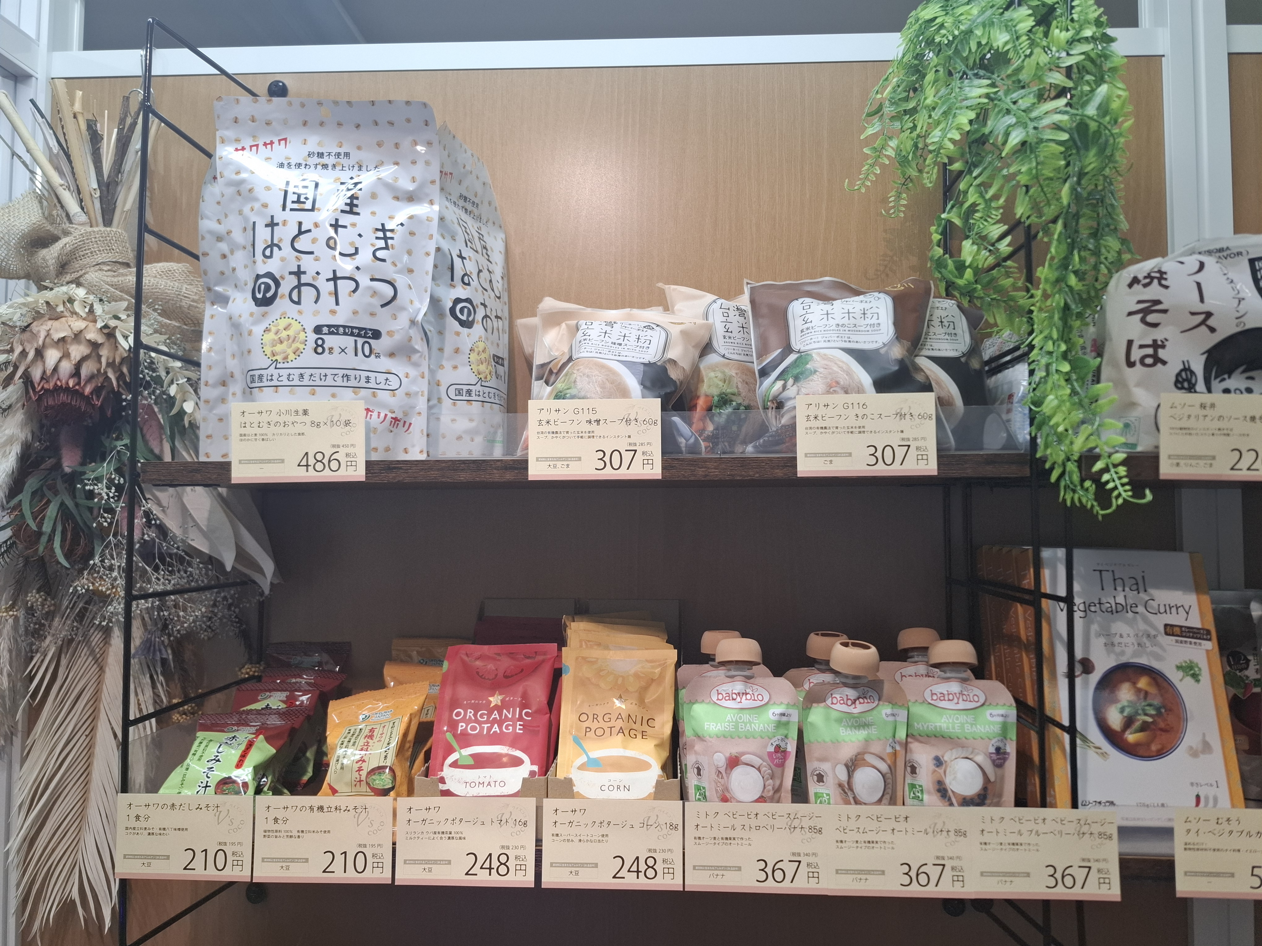 取扱商品:(例) オーガニック調味料、無添加乾物、グルテンフリー食品、ヴィーガン食品、ココアイの焼菓子など