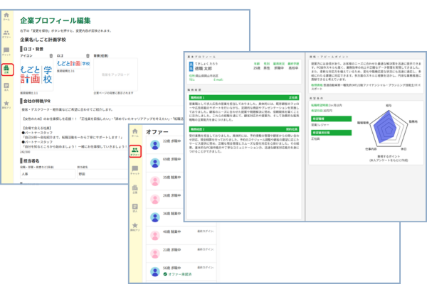 ▲画像は参加する求人企業側の管理画面など