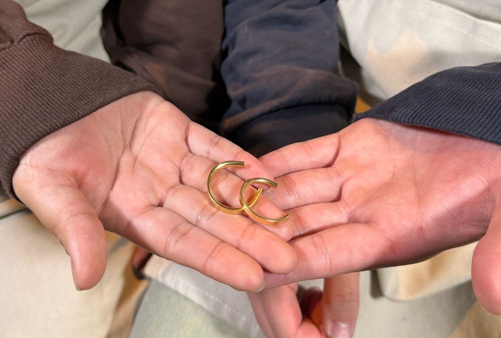 「彼と二人でデザインを考え、指輪を切って曲げて溶接して磨いていく作業は想像以上に楽しく、絆が深まった気がします。スタッフさんのサポートも丁寧で、不器用な私たちでも本当に素敵な指輪が完成しました!」
