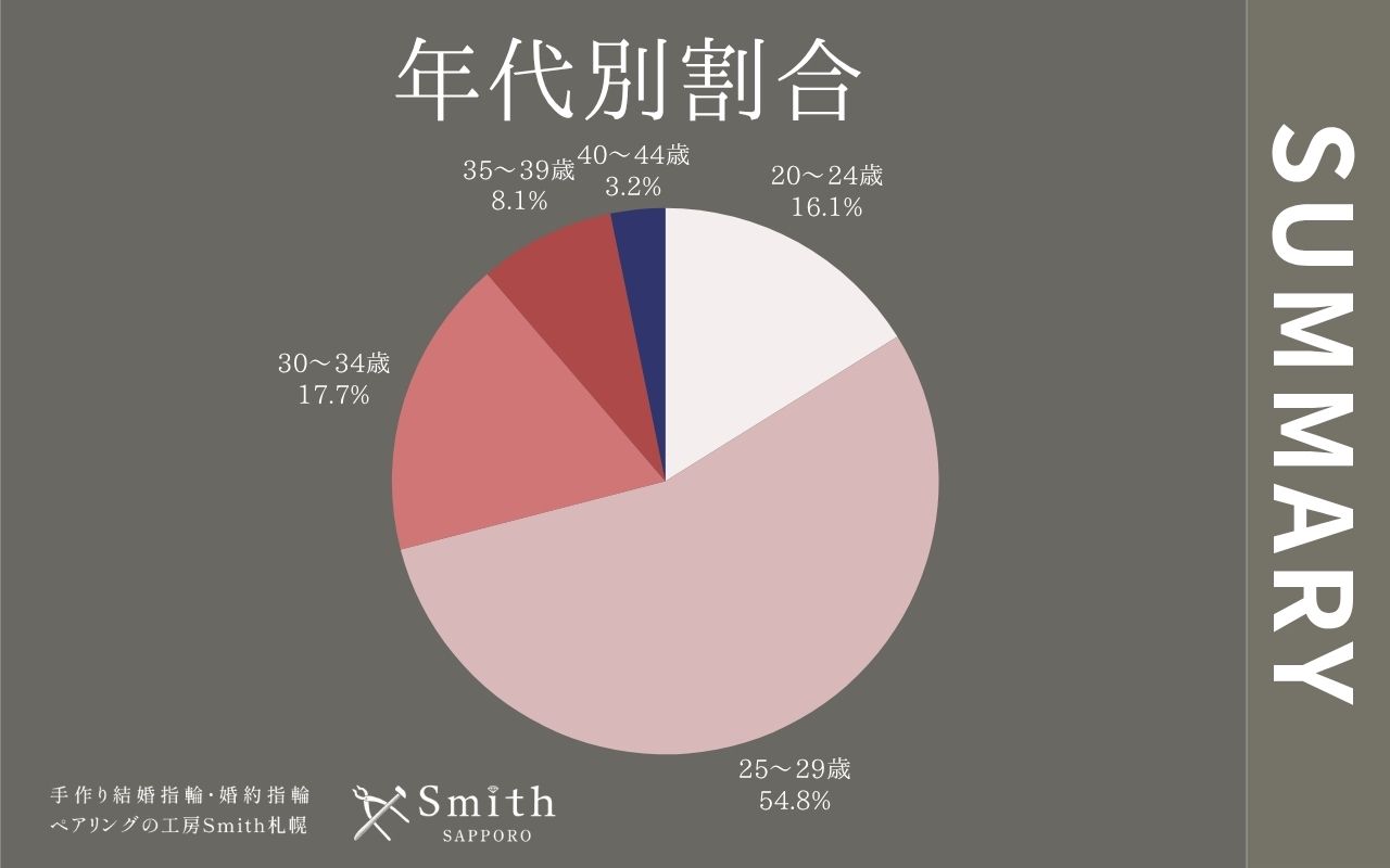 今回の結果から、結婚・婚約指輪を検討する中心層である20代後半のカップルが、工房Smithのサービスに強い魅力を感じていることが伺えます。この年代は、手作りの特別感やセミオーダーの高い自由度を重視する傾向にあり、当店が提供する「体験と品質」が、お客様のニーズに合致していると分析します。