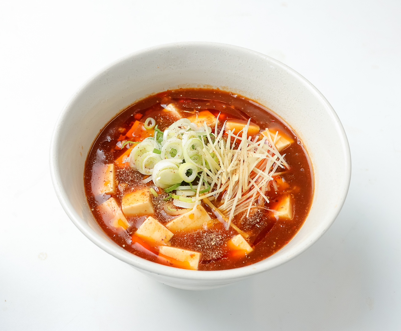 生姜ワンダーの特製チャーシューを漬けこんだ醤油ダレをベースに、豆鼓醤・特製辛みそ・自家製生姜オイル等を入れ、辛さの中に甘みのある麻婆麺です。