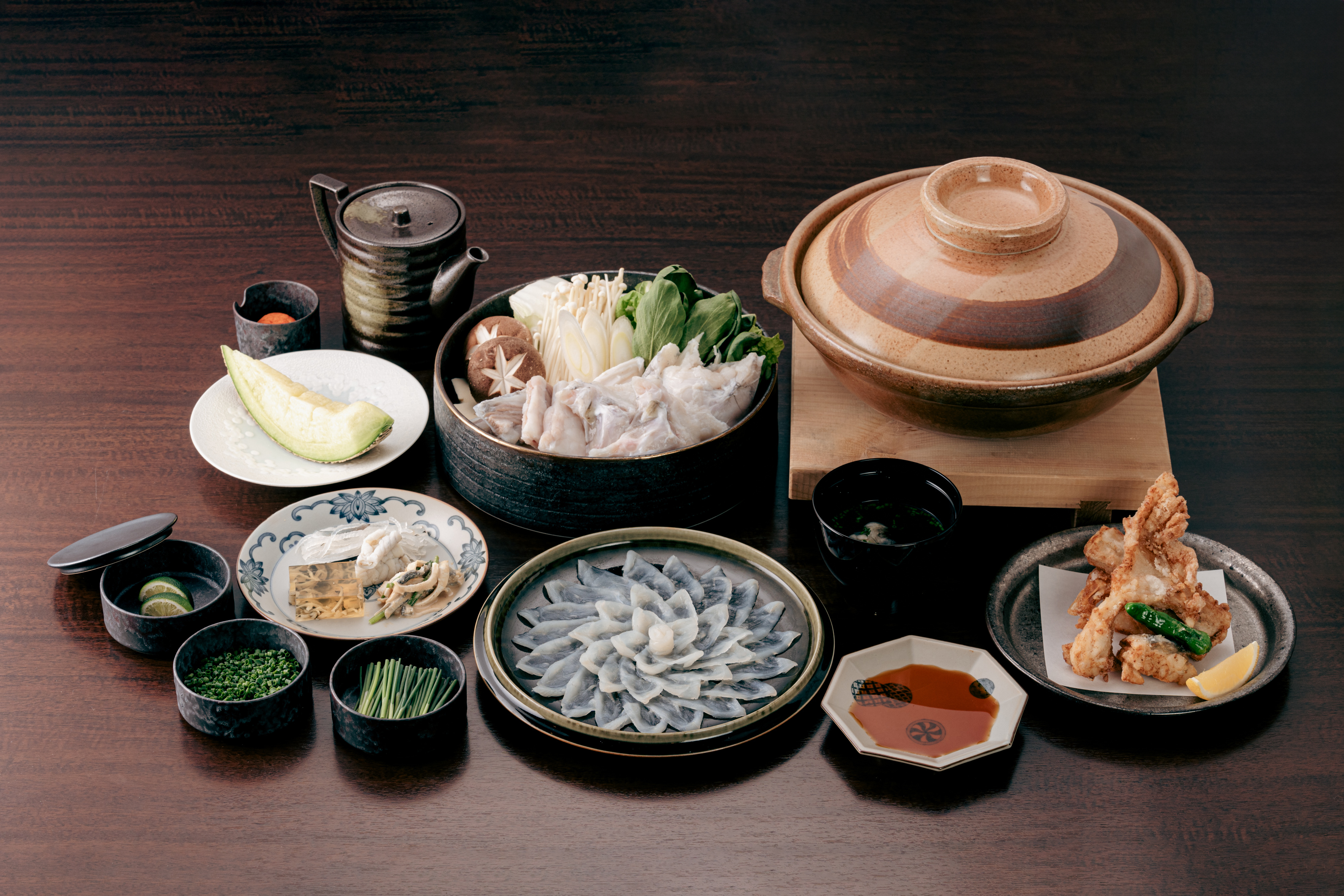 ふくの本場下関のとらふくを、お多福調理人の技で表現する贅沢なフルコース。三日間熟成したふく刺し、おもてなし係が卓上で作りあげるふくちりをはじめ、ふく皮の前菜、唐揚、ふく吸、〆の雑炊まで、とらふくの旨みを余すことなく味わえます。