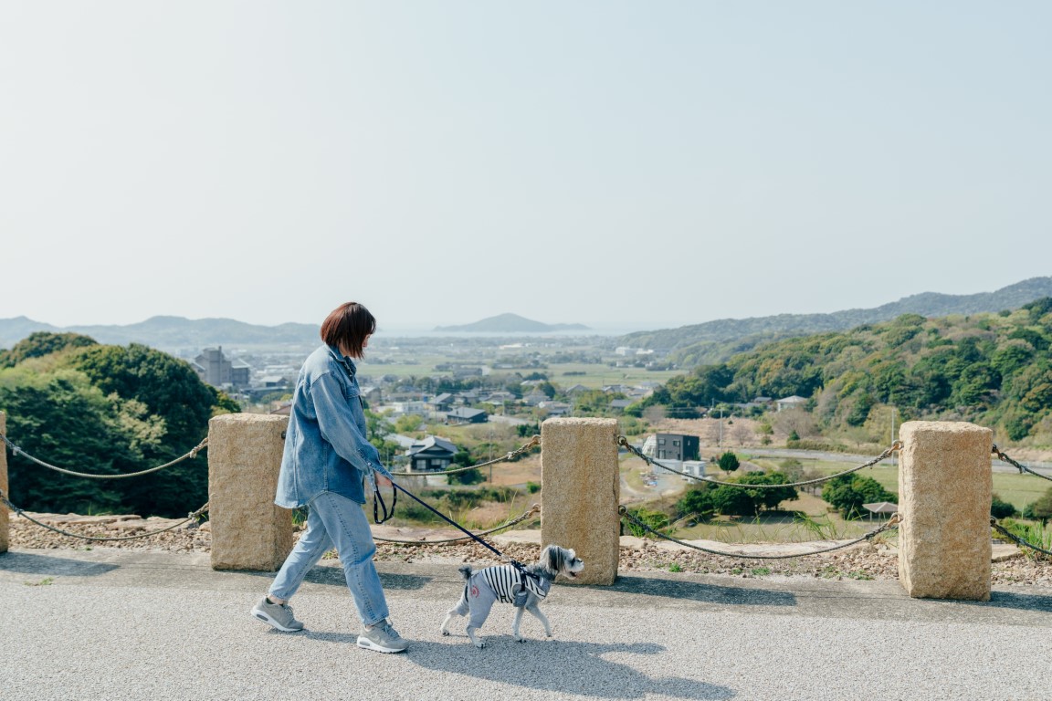 川棚の自然を満喫できるお散歩コースで、愛犬と一緒にリフレッシュ。響灘にぽっかり浮かぶ厚島を見渡すことができる青龍湖こと舟郡ダム。1周が1500mの周回道路があり、わんちゃんとのお散歩にもぴったり。夏は響灘を愛犬とSUPで水上さんぽも人気。
