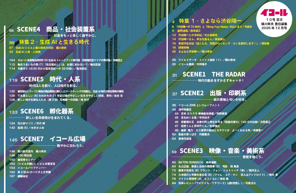 本格的な情報化社会に向けて『イコール』は疾走します! 今号は、ロッキンオン「渋谷陽一追悼特集」。 ロッキンオン創業メンバーの一人、橘川幸夫責任編集ならではの記事をお届けします。