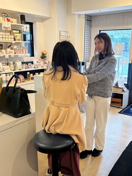 ご来店いただいたお客様ごとに肌に関する悩みをヒアリングし、ひとり1人に合わせたスキンケア方法やおすすめのスキンケア商品を丁寧にレクチャーいただきました。