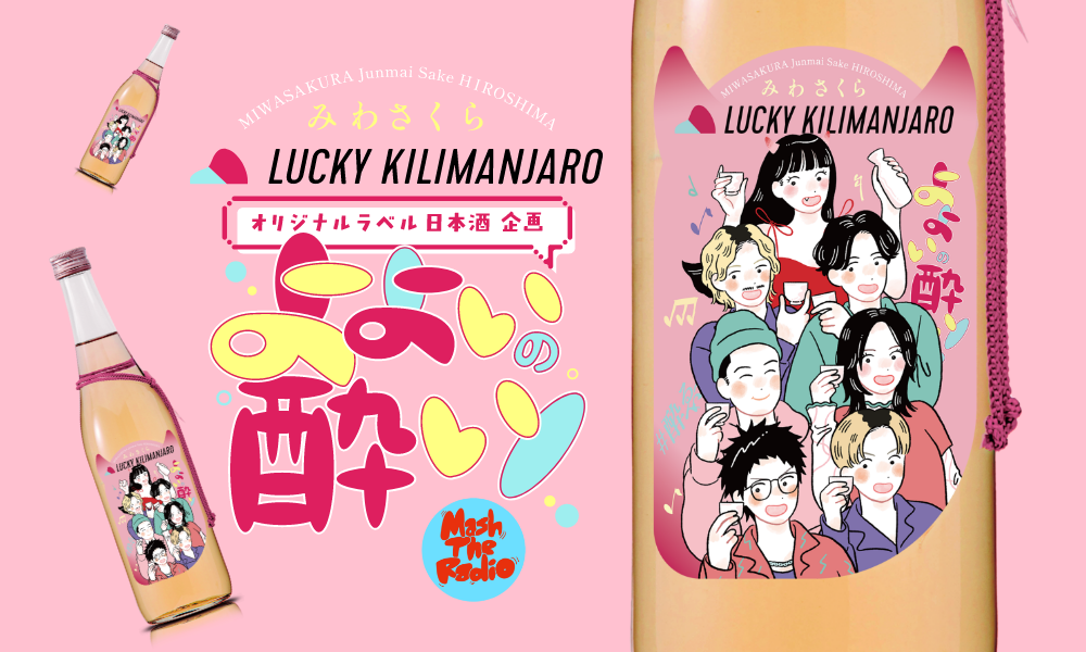9月から11月まで広島FM「Mash the Radio」でコーナー展開された「よよいの酔い」このコーナーから生まれた、Lucky Kilimanjaro とのコラボレーションラベルの純米酒を数量限定で販売します。、若い世代にも開かれた新しい日本酒体験を提案します。