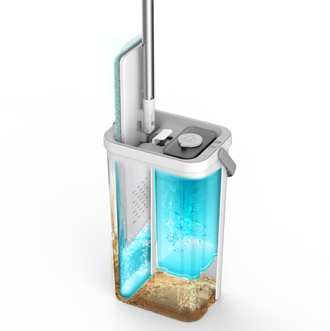 ・立ったまま、バケツ内でモップを上下に動かすだけで、簡単にモップの洗浄や水切りができます。