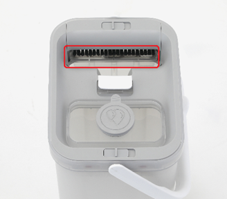 ・注入口と排水口を分けた特殊構造でバケツ内の汚れた水が混ざらず、いつもきれいな水でモップを洗えます。