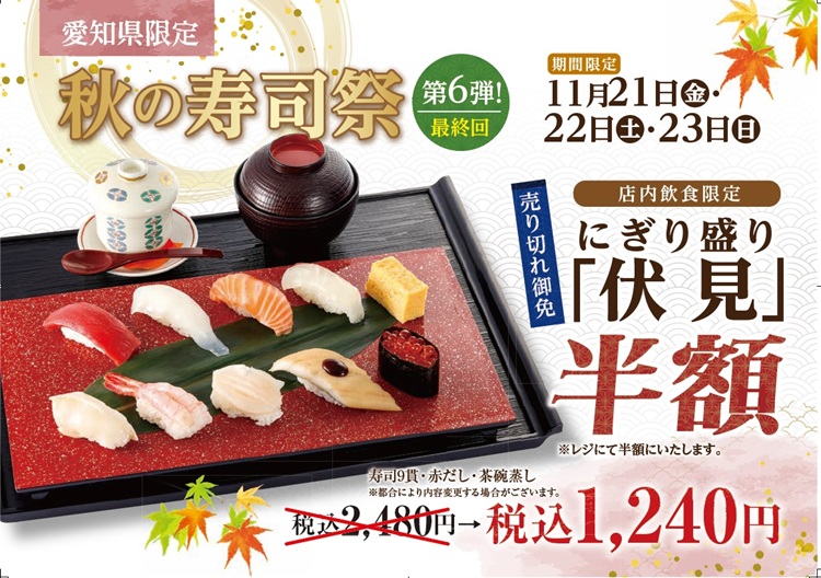 【にぎり⻑次郎】愛知県限定!11/21(金)から秋の寿司祭第6弾開催!