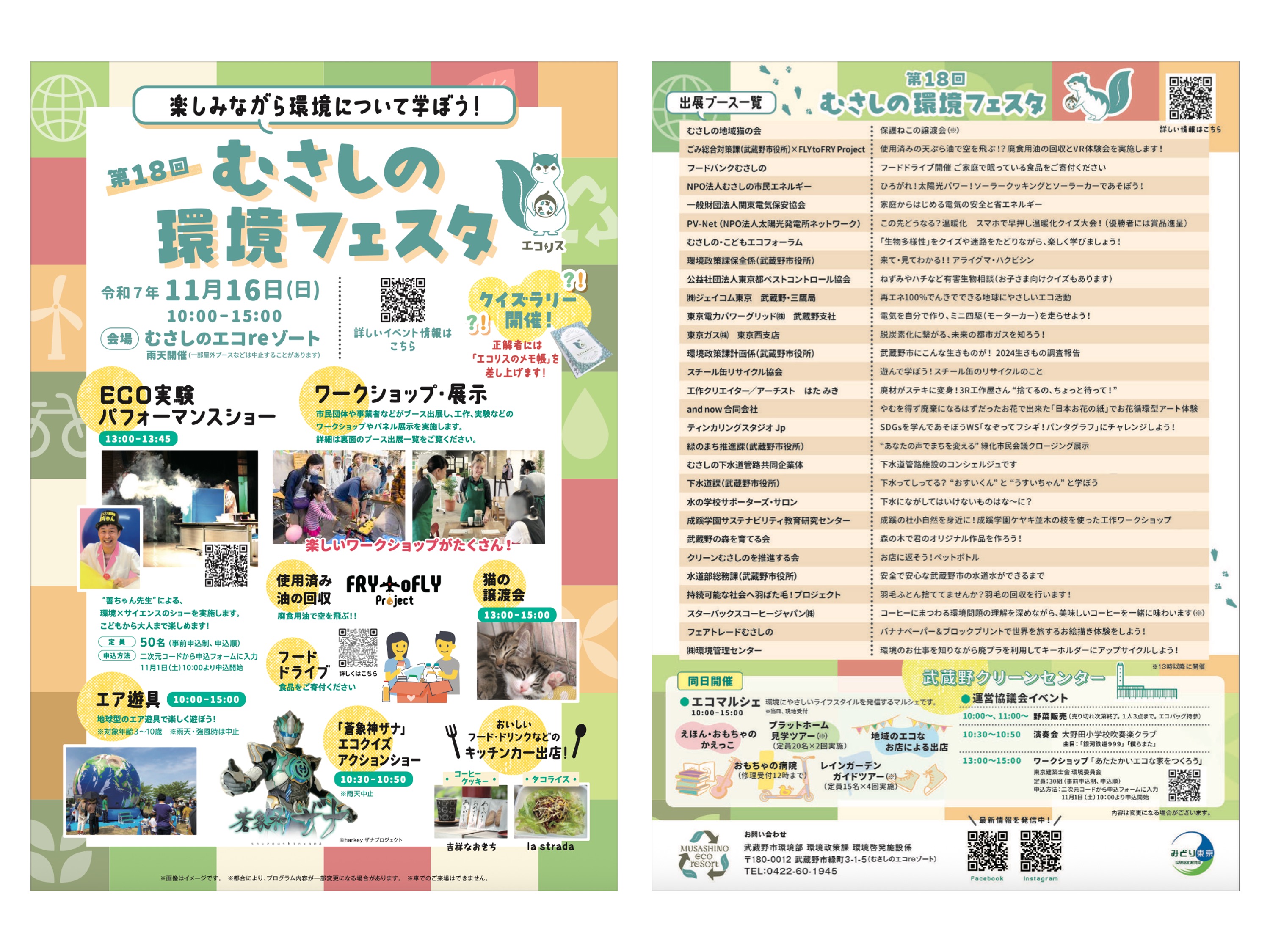 株式会社環境管理センター(本社:東京都八王子市、代表取締役社長:水落憲吾)は、2025年11月16日(日)にむさしのエコreゾートで行われる「第18回むさしの環境フェスタ」に今年も出展します。
