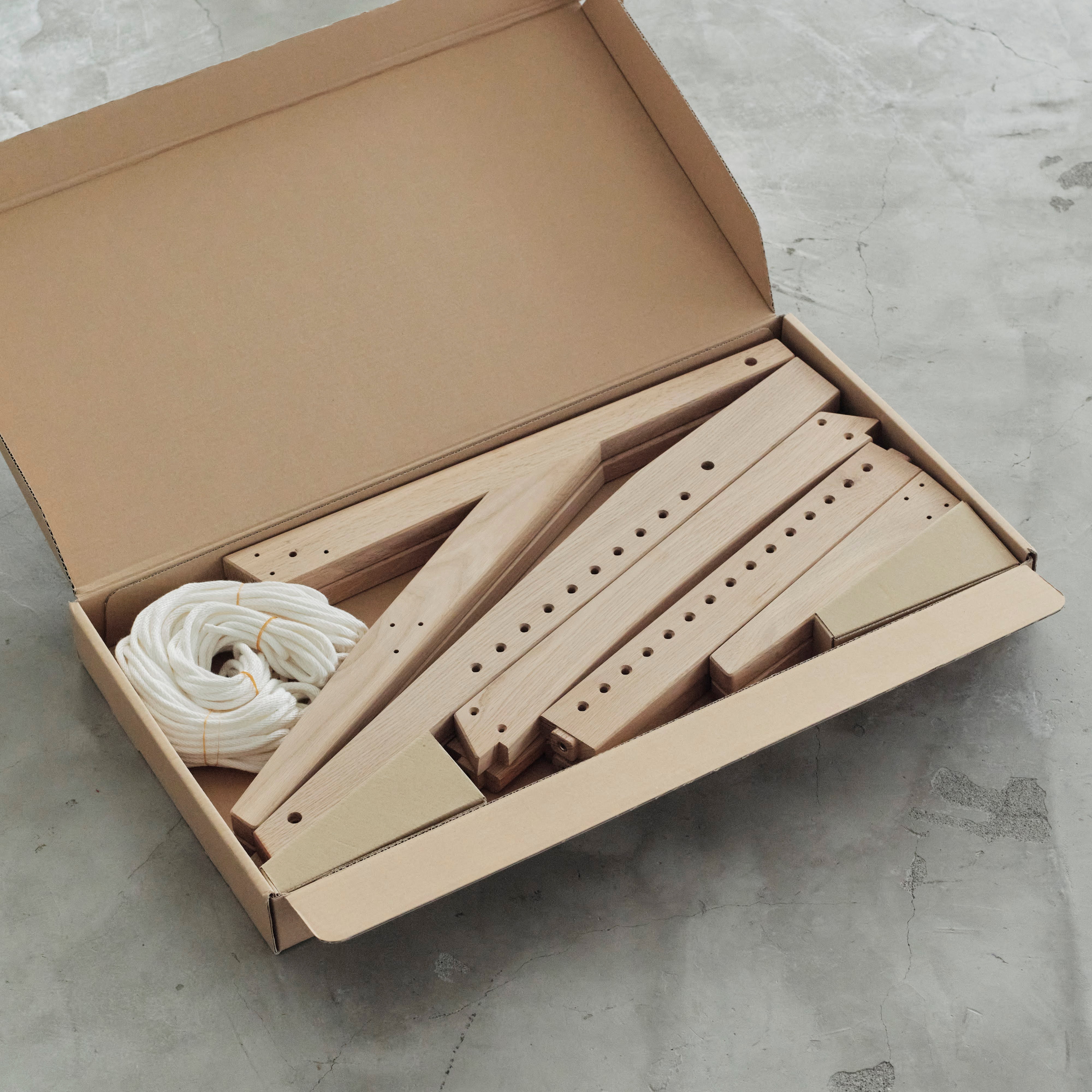 今回の復刻では、自身で組み立てを楽しめる組立モデルも同時発売。ロープを張る際に使う専用クランプや、仕上げ用のオイルまで付属しており、ものづくりが好きな人にとってはたまらないセットになっています。手を動かしながら完成させる過程そのものも、十分に楽しめる仕様です。