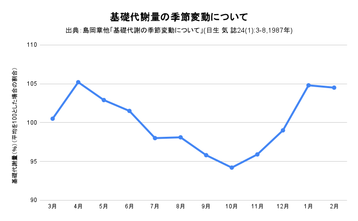 ※1 引用文献:島岡章他「基礎代謝の季節変動について」(日生 気 誌24(1):3-8,1987年)