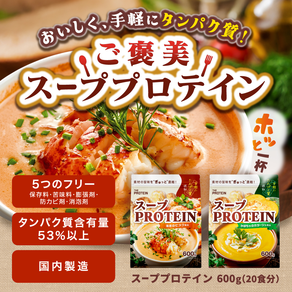 ■商品名:THE PROTEIN スーププロテイン 600g (海老のビスク風味 ほか全2種)