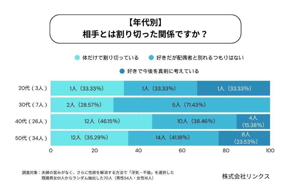 - 30代以下:割り切った関係/別れる気はないが多数派