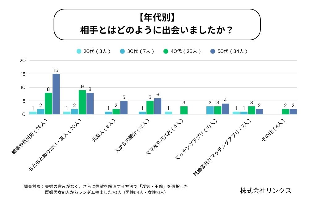 と続き、身近な人間関係から関係が発展しているケースが多いことが明らかに。