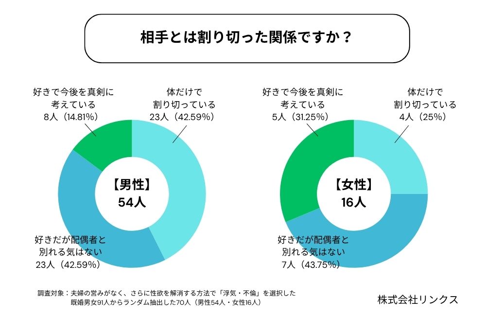 ■ 不倫相手との関係、「割り切り」or「好きだけど別れない」が8割超