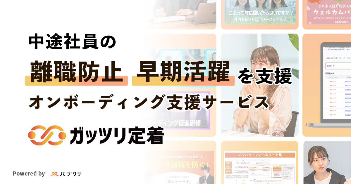 中途社員の離職を防ぐオンボーディング支援サービス。離職兆候の検知から交流機会づくりまで一貫サポートし、企業と社員のミスマッチを防ぎ、定着をガッツリ支援します。