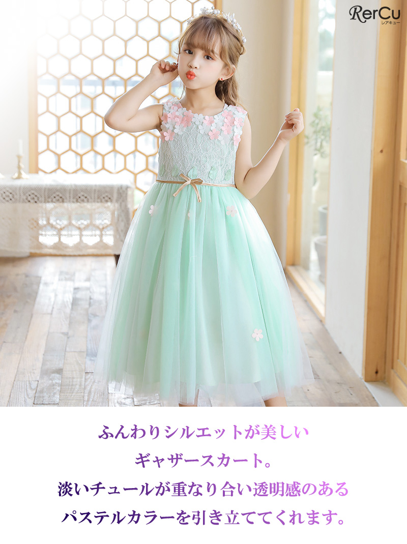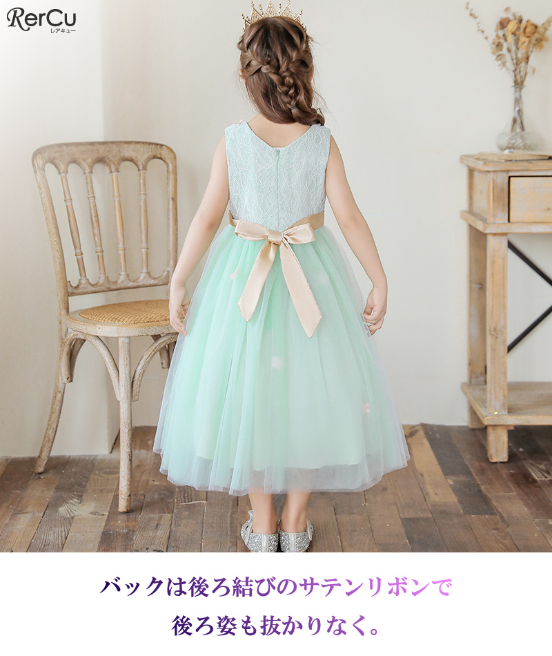 ・商品名:RerCu チュール&レースのロング丈 フラワーモチーフ付き発表会ドレス SK151