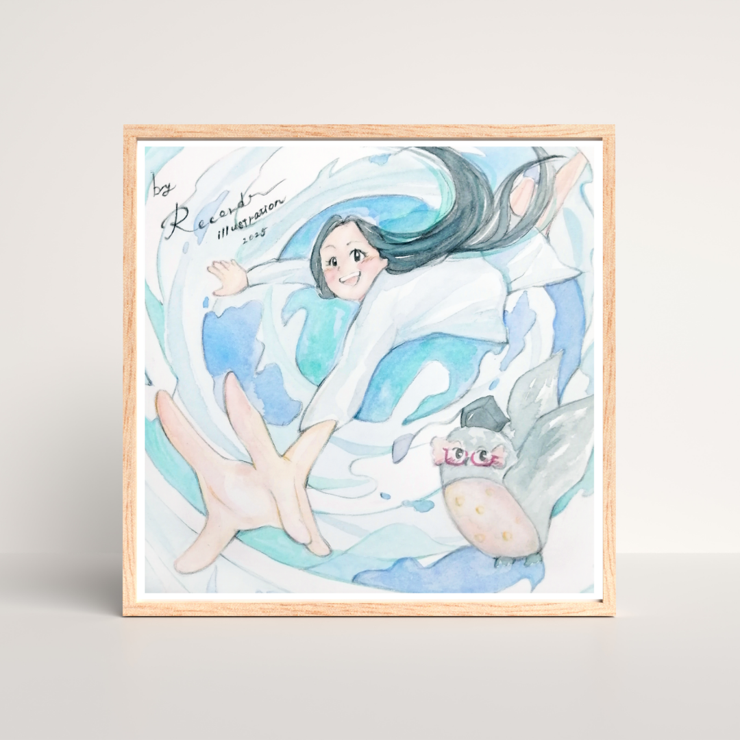 ※本作品は、写実性よりも“人の感性”と“挑戦の痕跡”を軸にした水彩作品です。