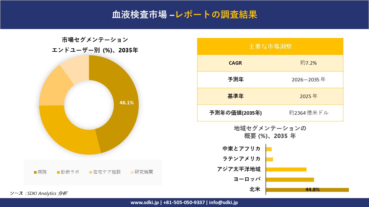詳細な市場調査レポートのリンクは次の場所から入手できます: https://www.sdki.jp/reports/blood-testing-market/114403