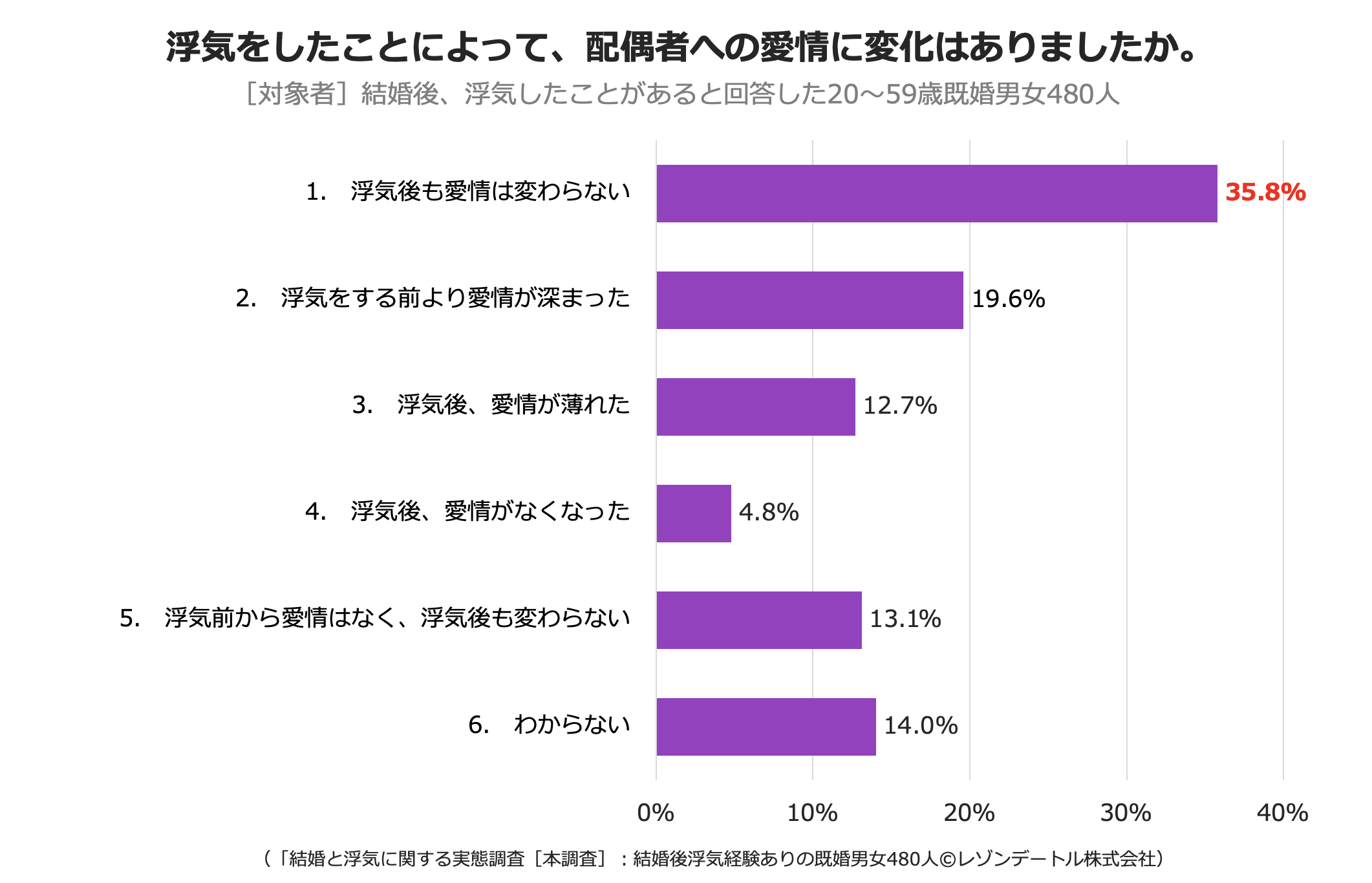 1. 浮気後も愛情は変わらない 35.8%