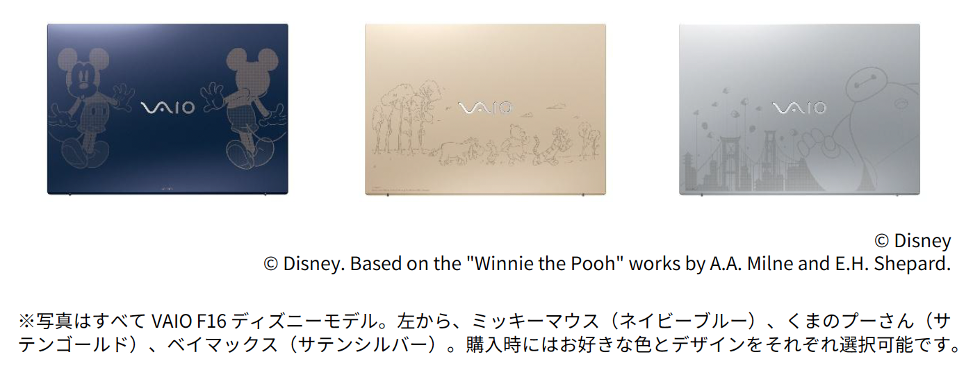 ディズニーモデルの「VAIO F16・F14」がVAIOストア限定で販売開始