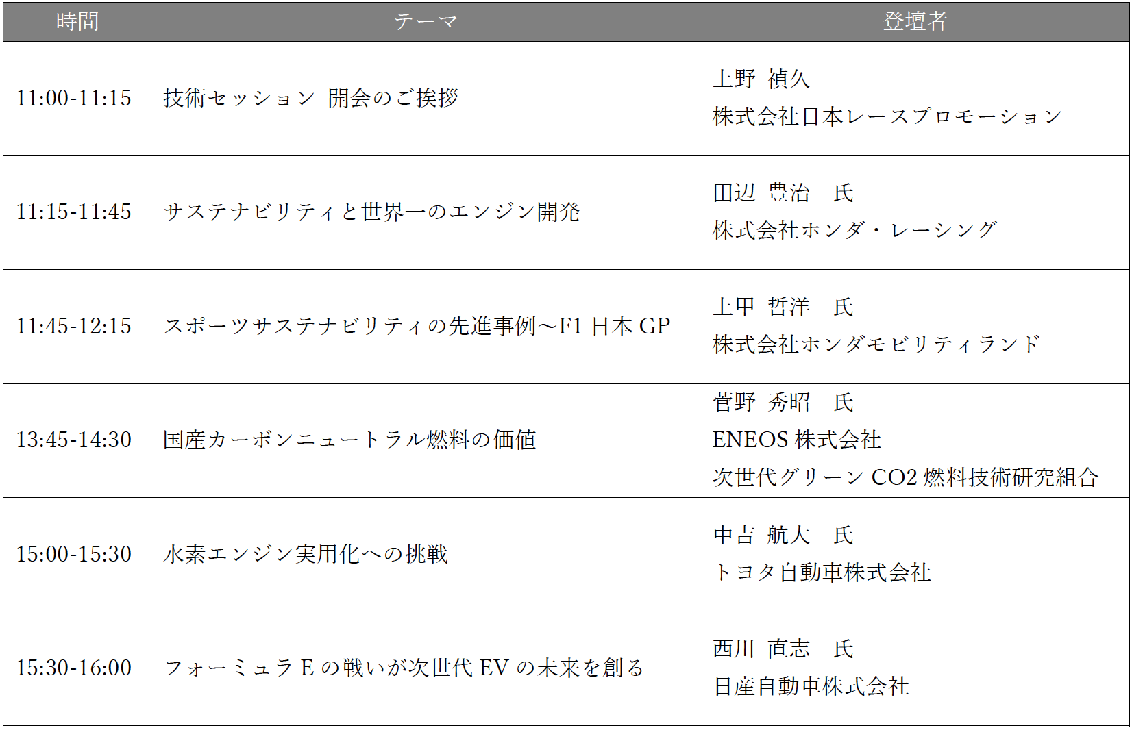 国内最⾼峰で最速の⾃動⾞レースシリーズである全⽇本スーパーフォーミュラ選⼿権(以下「SUPER FORMULA」)を運営する株式会社⽇本レースプロモーション(以下「JRP」)は、2025年11⽉21⽇(⾦)に鈴⿅サーキット(三重県鈴⿅市)で開催する「第2回技術セッション」の基調講演の登壇者が決定したことをお知らせいたします。