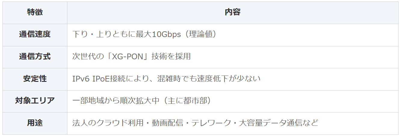 最大10Gbpsの超高速・高品質通信を実現する法人向け光回線です。