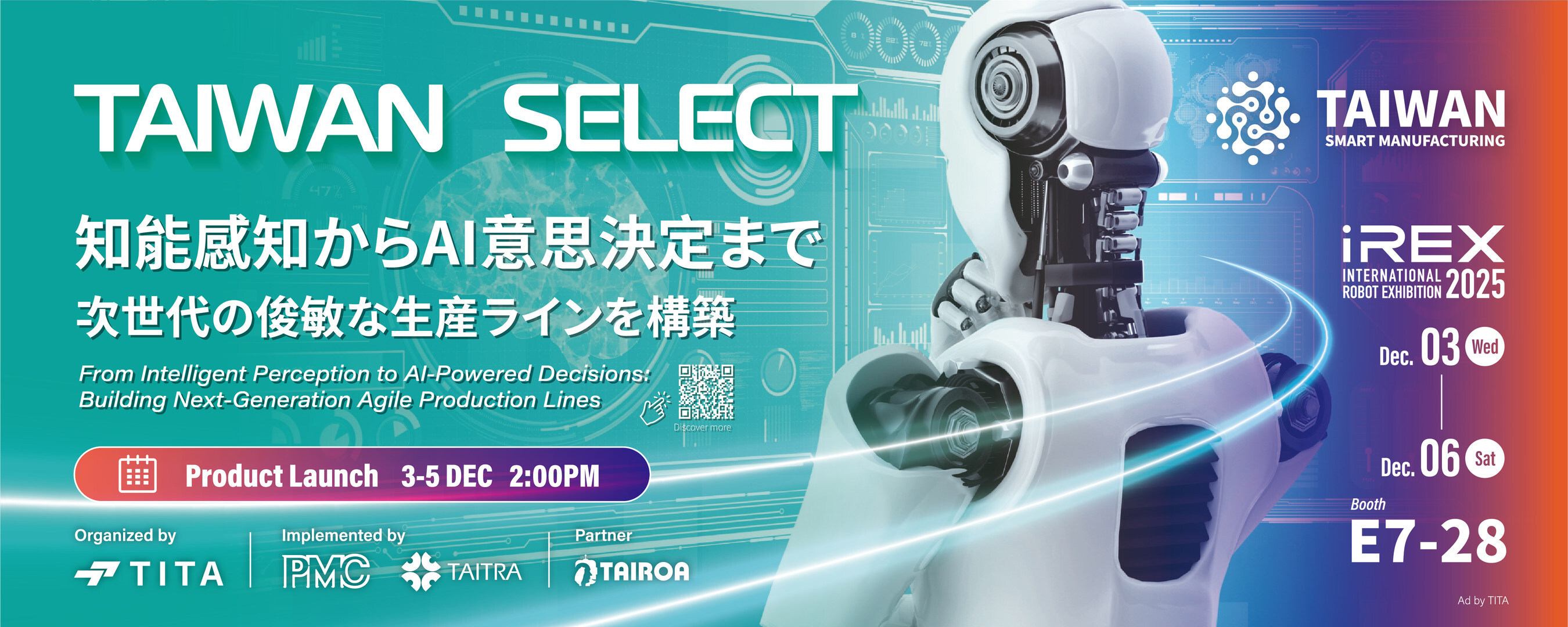 台湾知能自動化・ロボット協会( TAIROA )は、12月3日から6日まで東京ビッグサイトで開催される「2025年国際ロボット展(iREX)」にて、台湾パビリオン(ブース番号 E7-28)を設置します。会期中には「知能感知からAI意思決定まで 次世代の俊敏な生産ラインを構築」をテーマとした製品発表会とビジネスマッチング会を開催いたします。