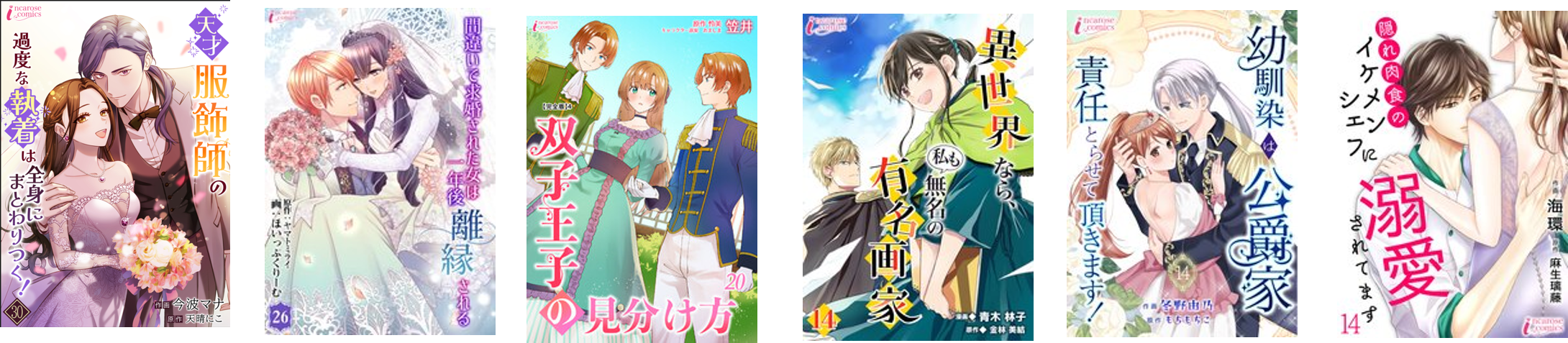 インカローズコミックスは、原作小説の面白さをもっと多くの読者に伝えたいをモットーとした、女性向けジャンルのコミックレーベルです。国内外へ向けて、ページ型マンガおよびタテ読みマンガをお届けするC&R社のオリジナルレーベルのひとつです。