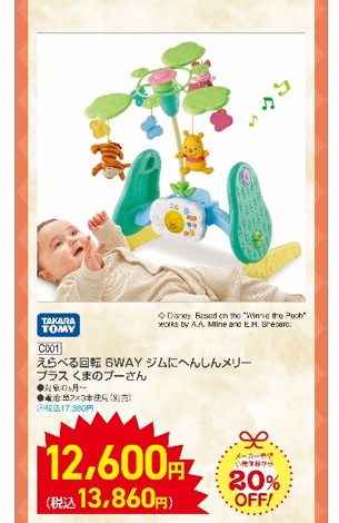ねんねの頃におすすめのアイテムは、「えらべる回転 6WAYジムにへんしんメリープラス くまのプーさん」。パワーアップしてリニューアル!メリーがジムにへんしん!6つのステップで成長に合わせて長く使えます。