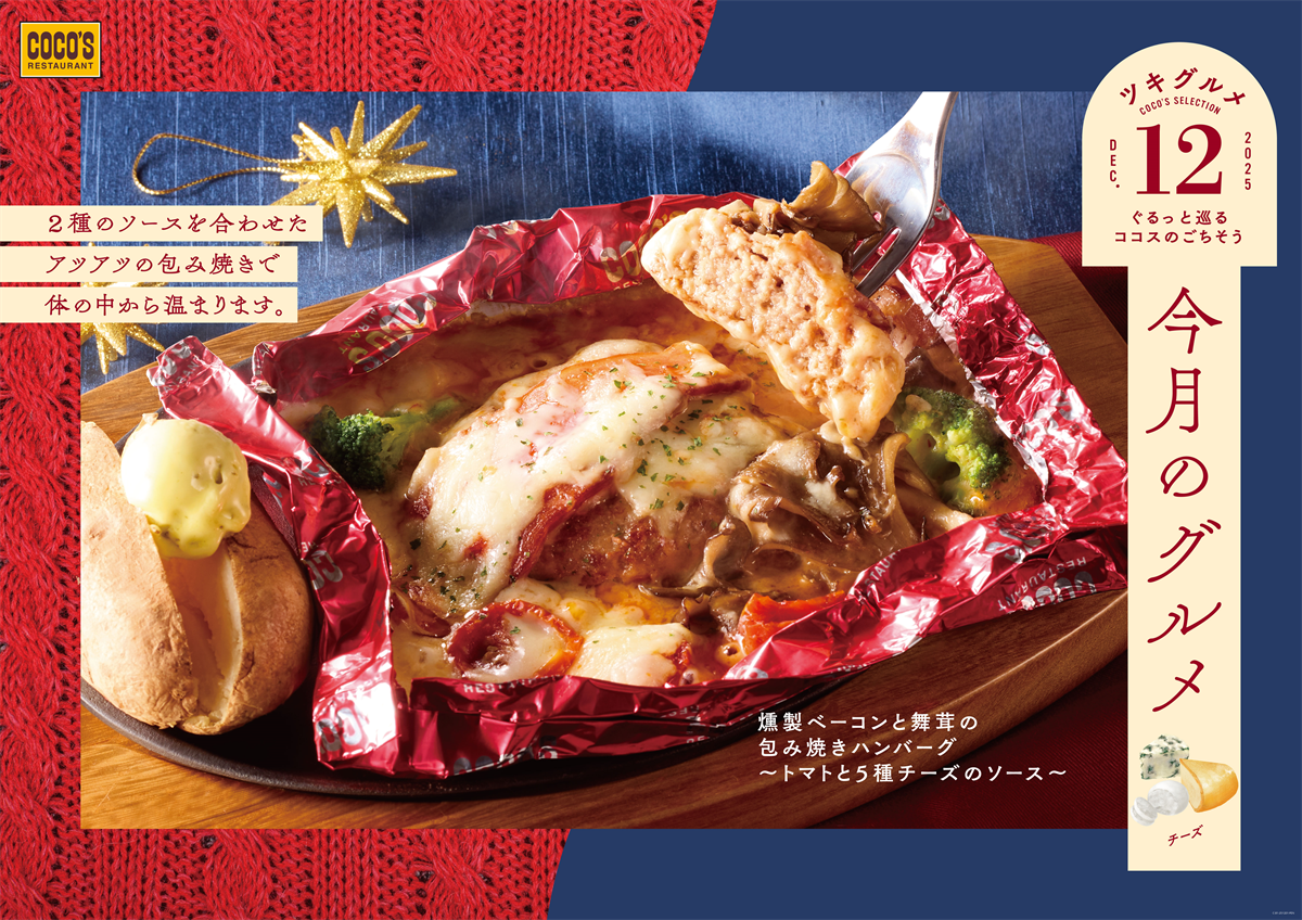 ぜひ、お近くのココスで、たっぷりのチーズをご堪能いただける「今月のグルメ~12月~」をお楽しみください。